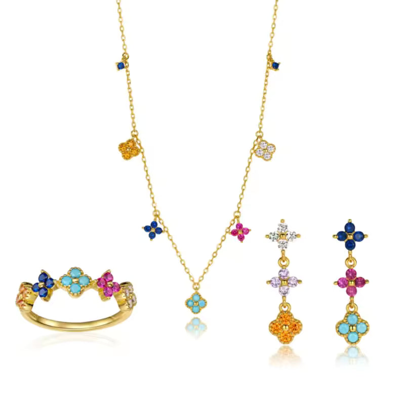925 Sterling Silver Lucky Clover Zircon Ring – Colorful Women’s Jewelr