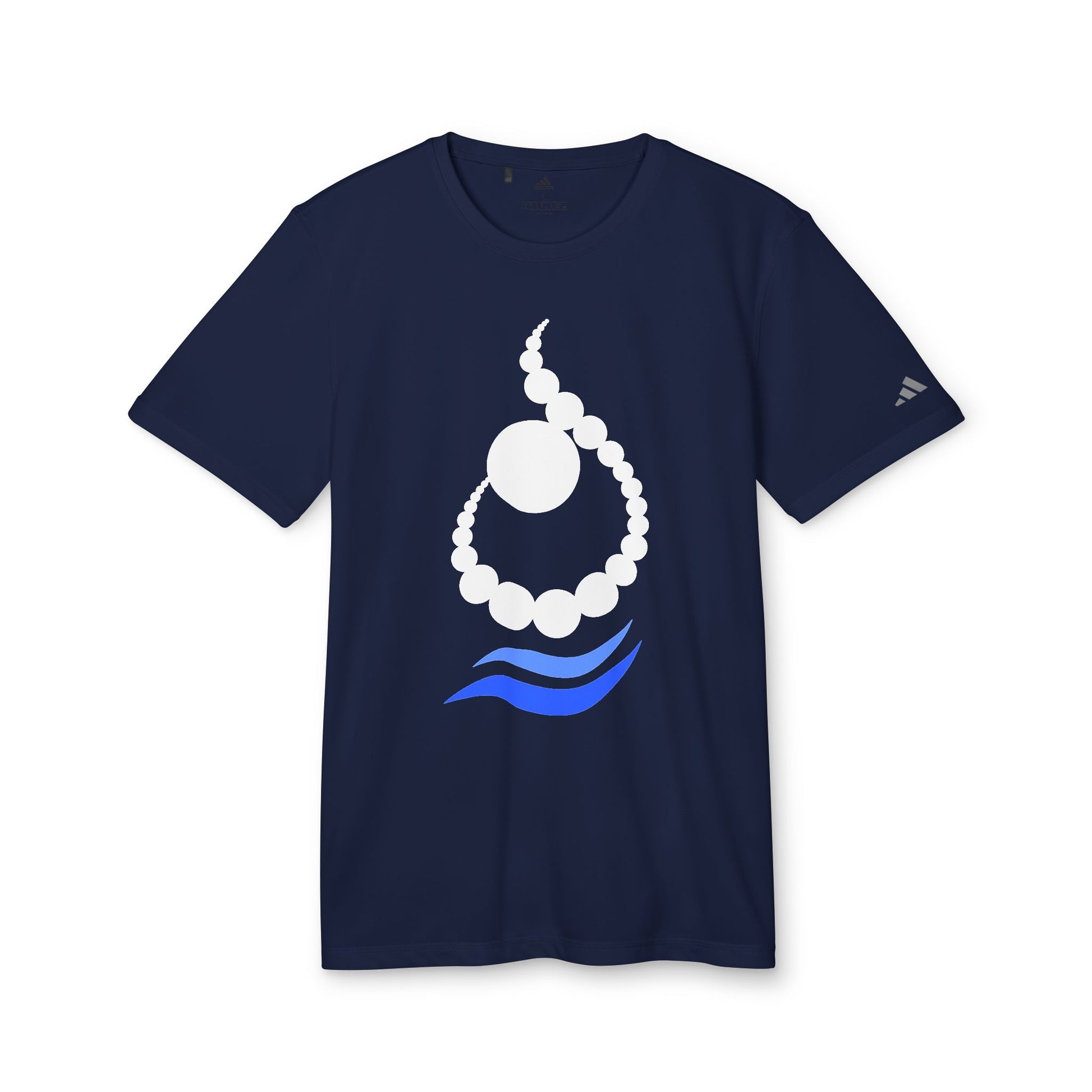 Crafted from 100% recycled polyester, this tee keeps you cool and dry with moisture-wicking technology and UPF 50+ sun protection, making it perfect for morning runs, workouts, or relaxed coastal days. The gold and blue sun-and-wave motif nods to calm energy and open horizons, while the embroidered Arabic letter ن (N) adds personal and cultural meaning.