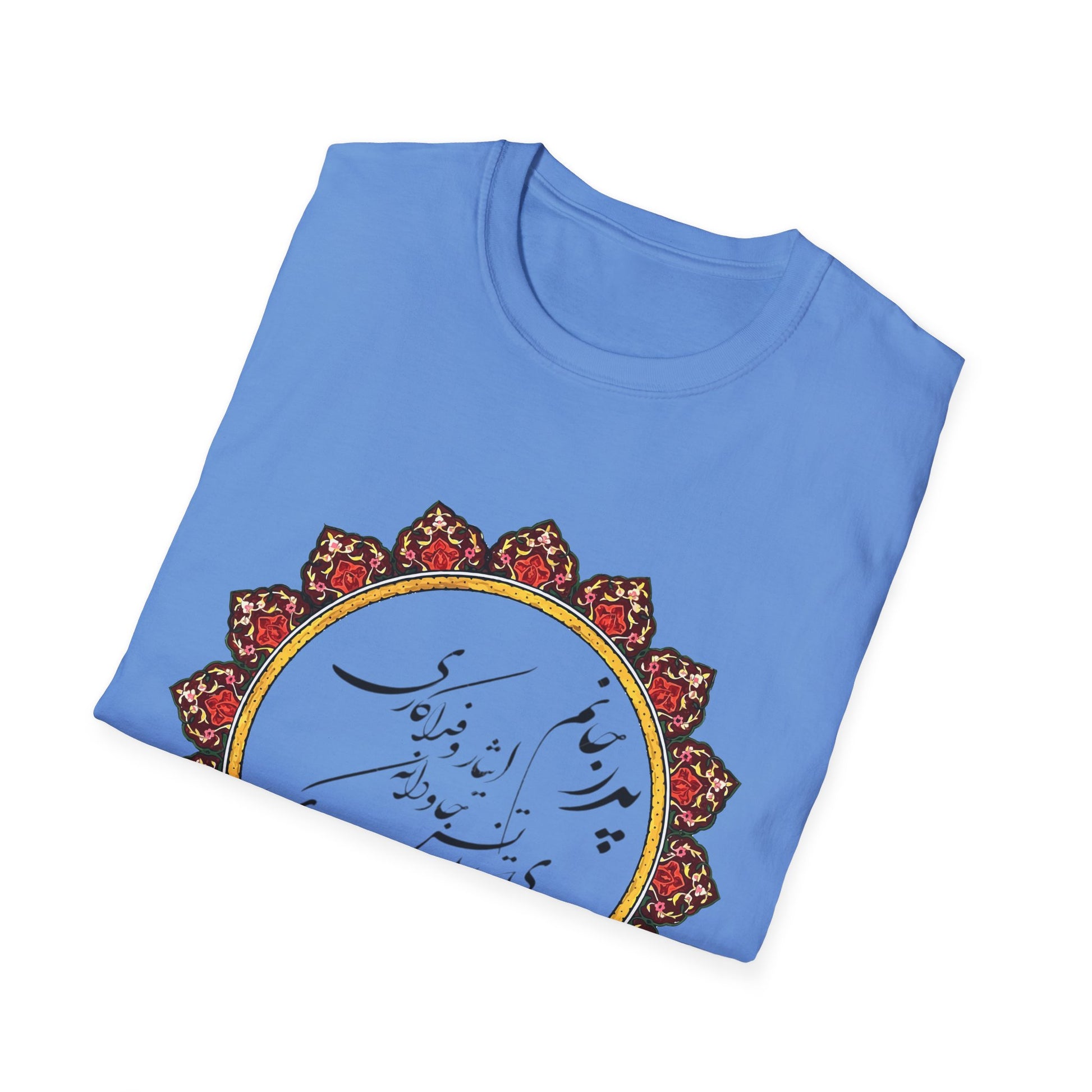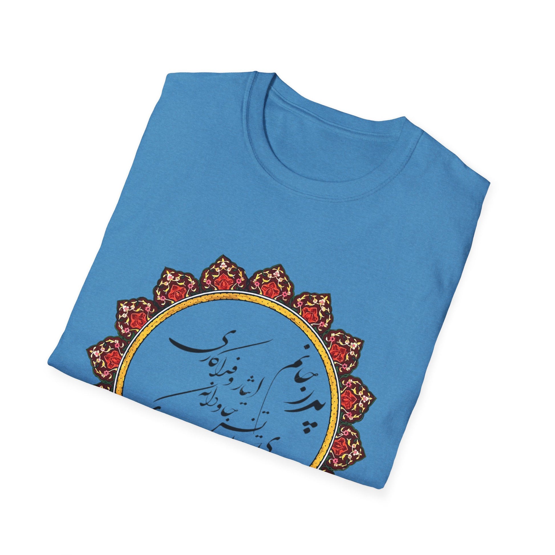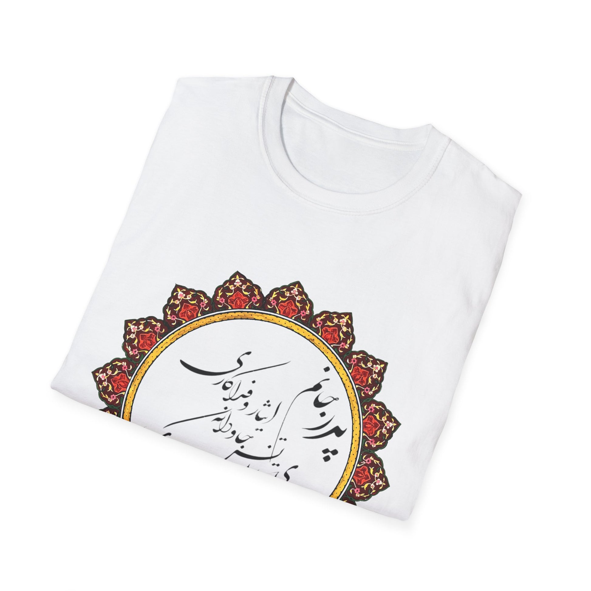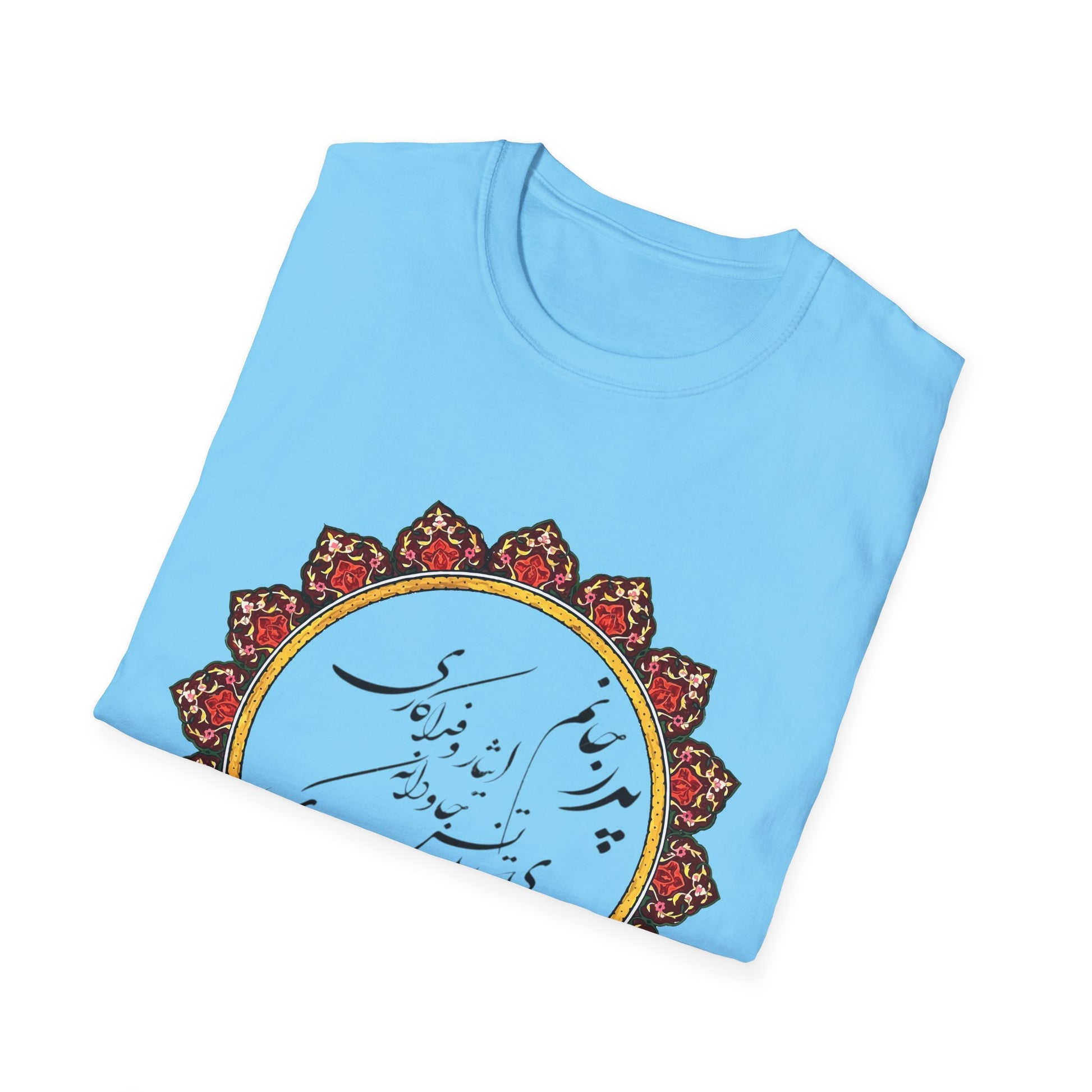 Honor the timeless presence of a father with this beautifully designed unisex softstyle t-shirt featuring the heartfelt Persian verse: