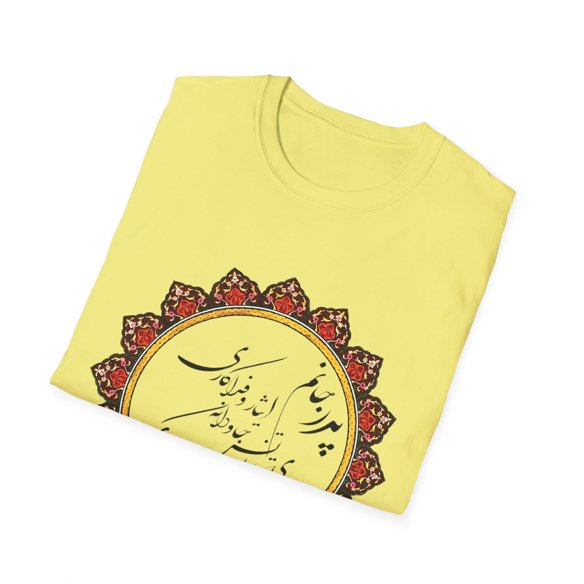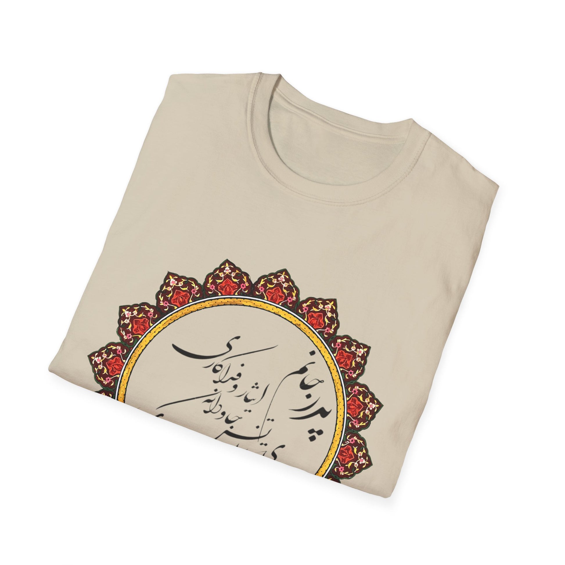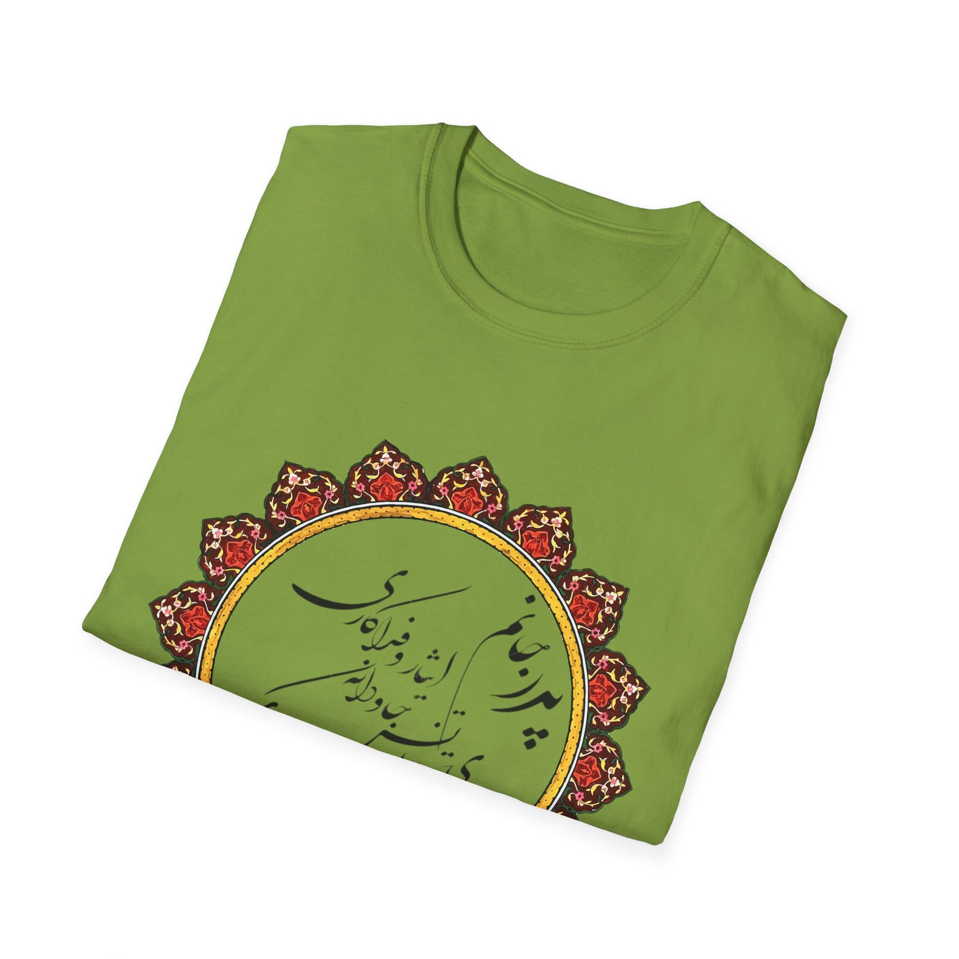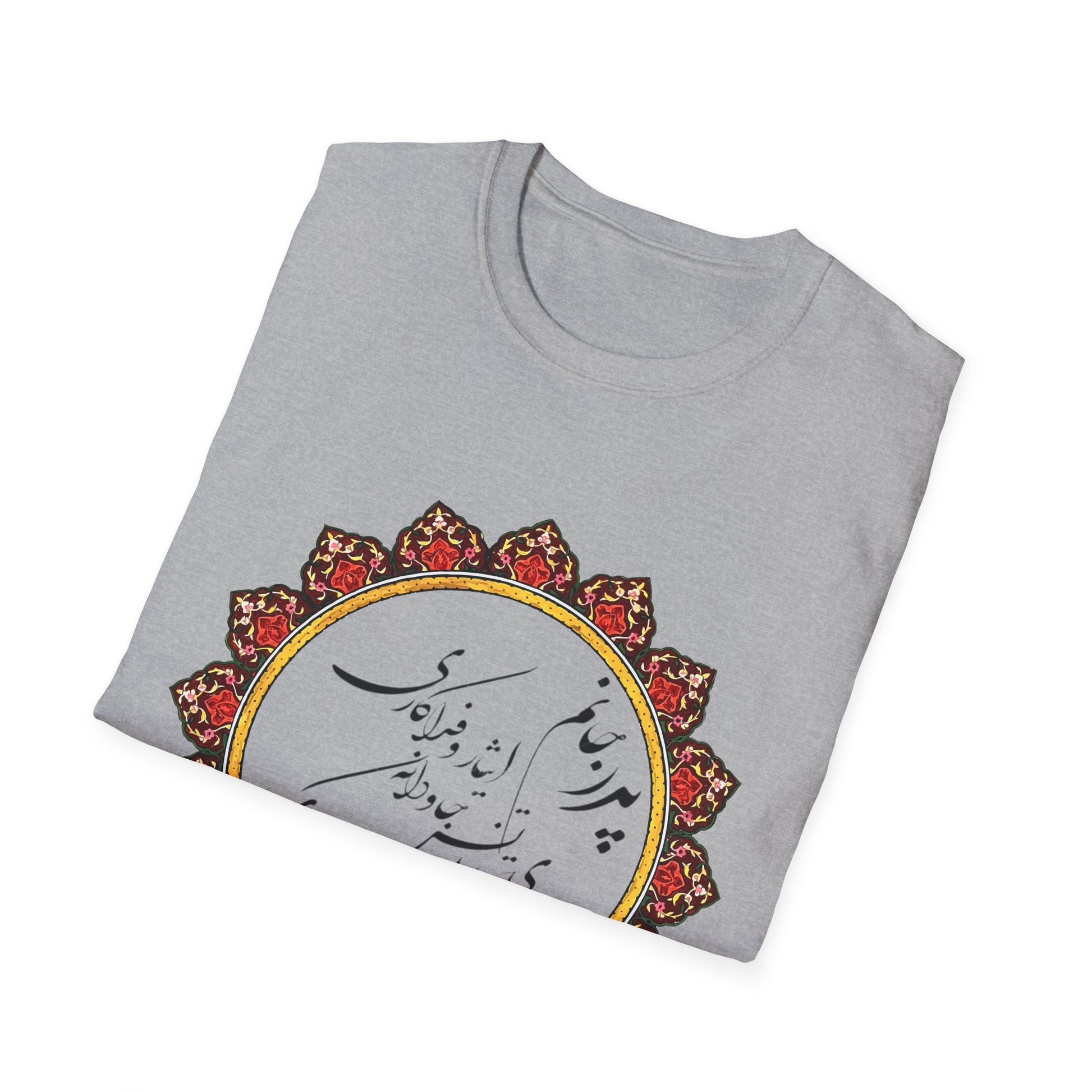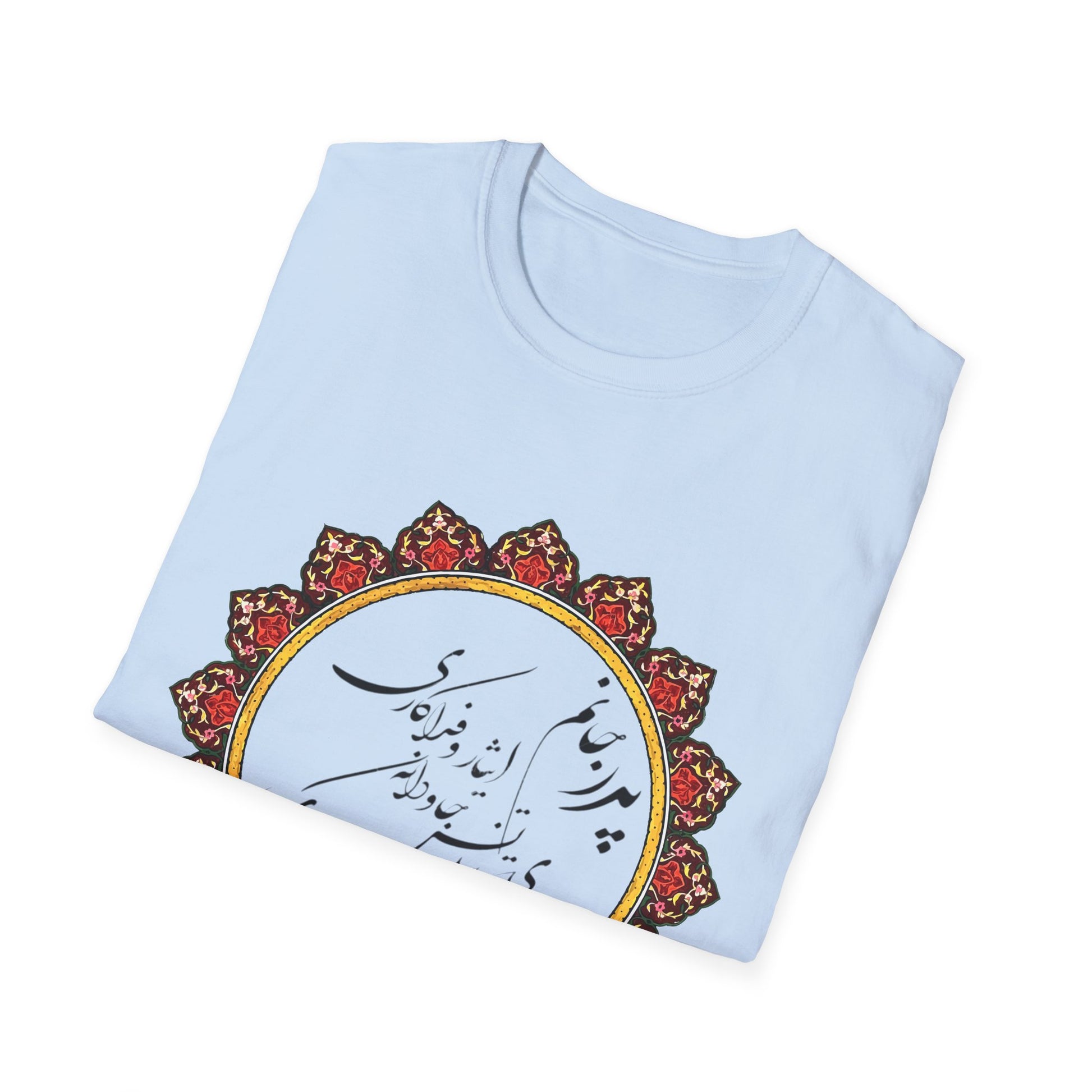 Honor the timeless presence of a father with this beautifully designed unisex softstyle t-shirt featuring the heartfelt Persian verse:
