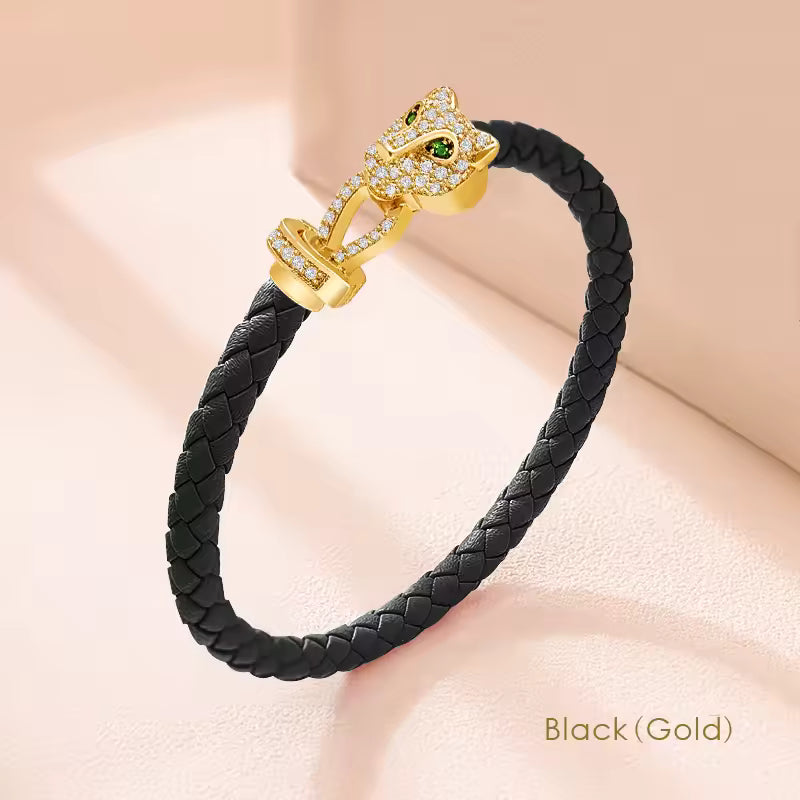 Turn heads with this Exquisite Cheetah Zircon Bracelet, a bold symbol of strength, elegance, and timeless fashion. Designed with genuine braided leather and a sparkling cheetah zircon motif, this bracelet adds instant sophistication to any look.