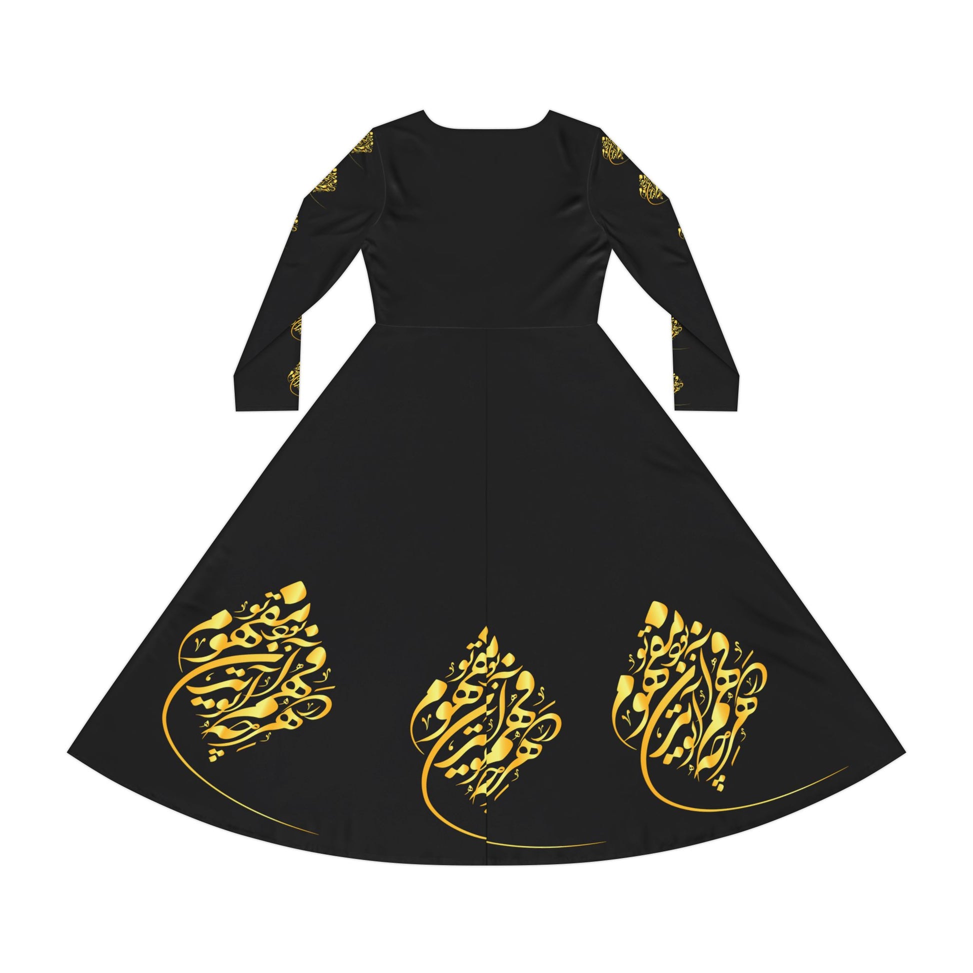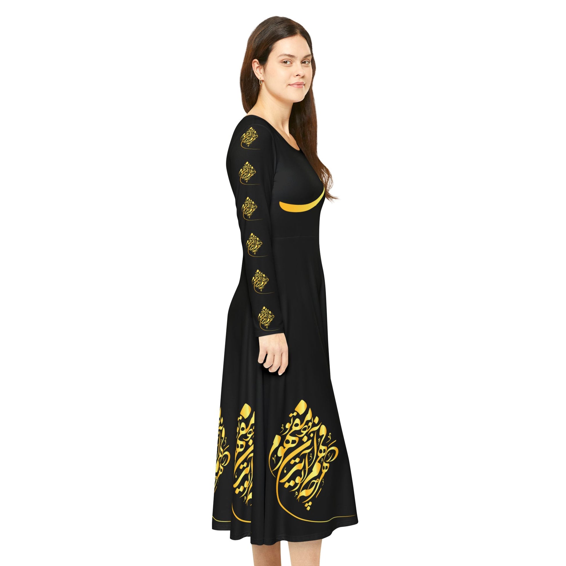 BLACK LONG-SLEEVE DRESS WITH GOLD CALLIGRAPHY – ATTAR POEM DESIGN