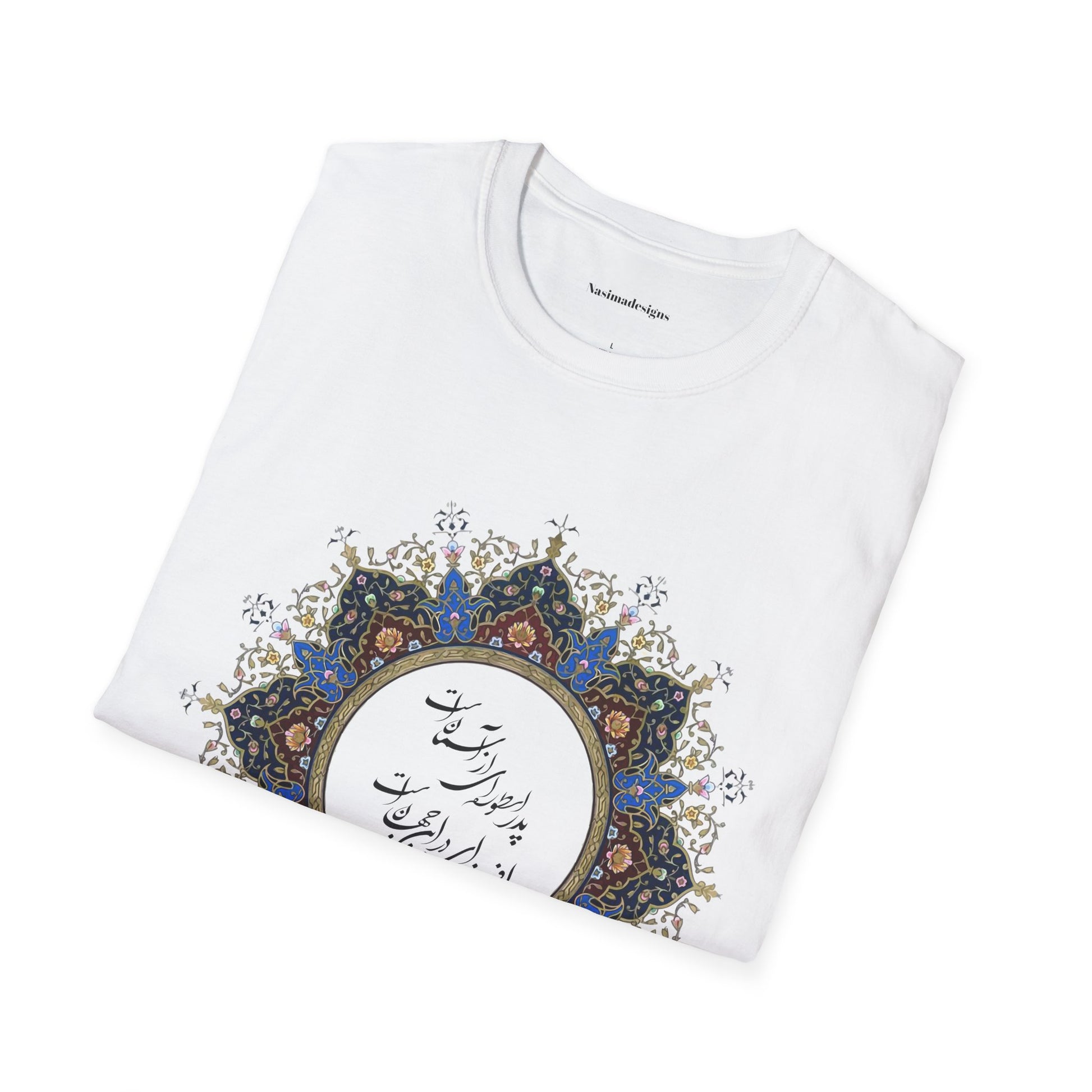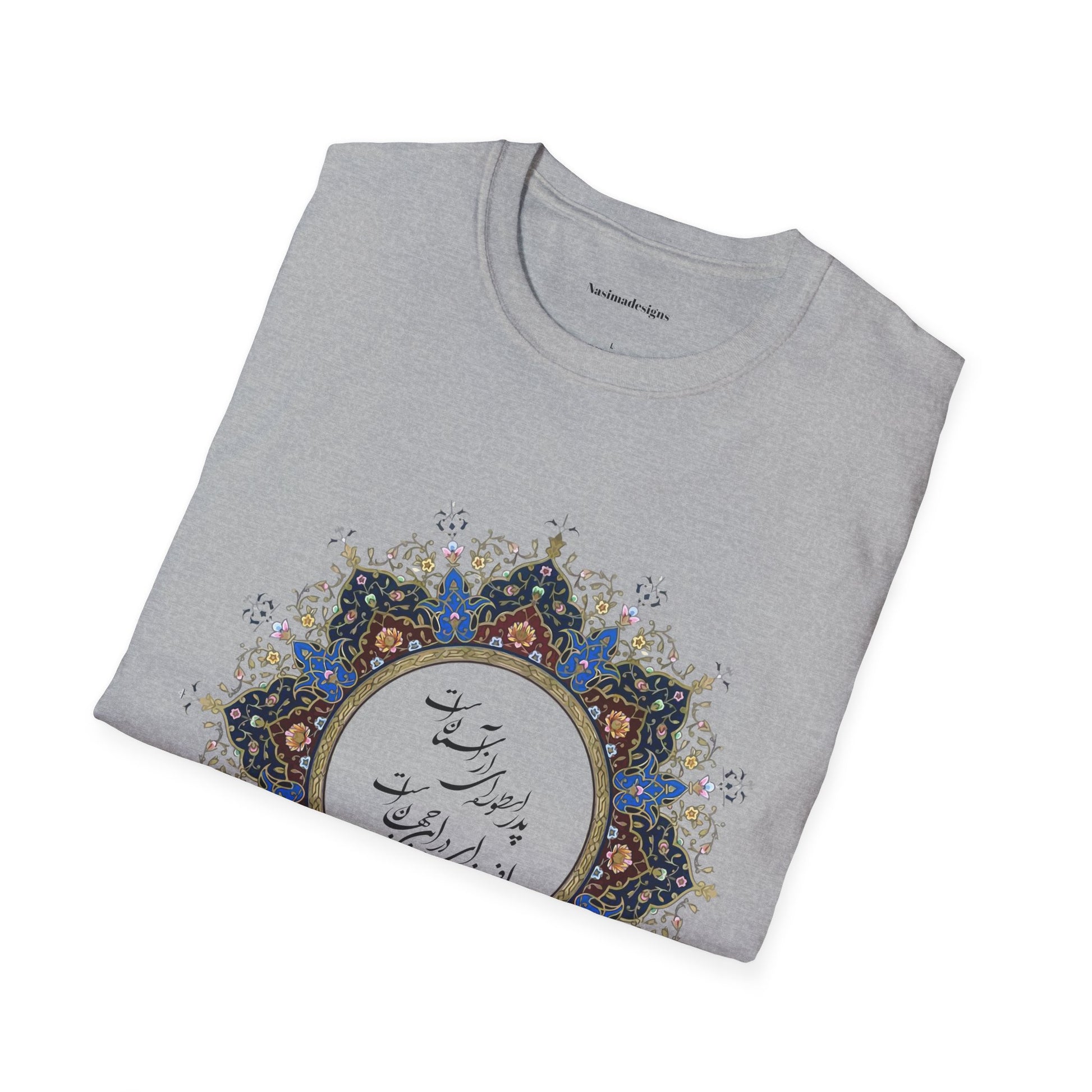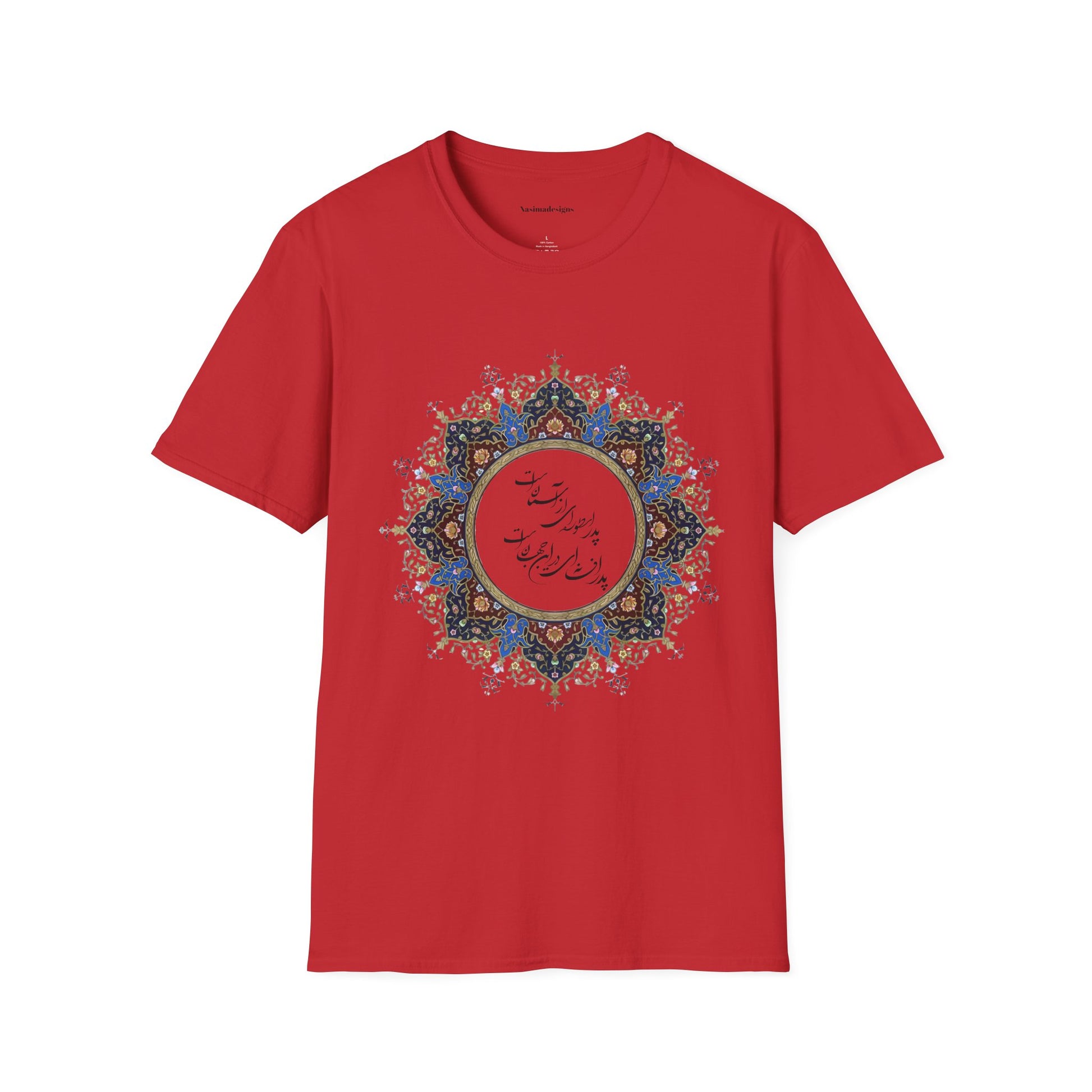 Honor the timeless presence of a father with this beautifully designed unisex softstyle t-shirt featuring the heartfelt Persian verse: