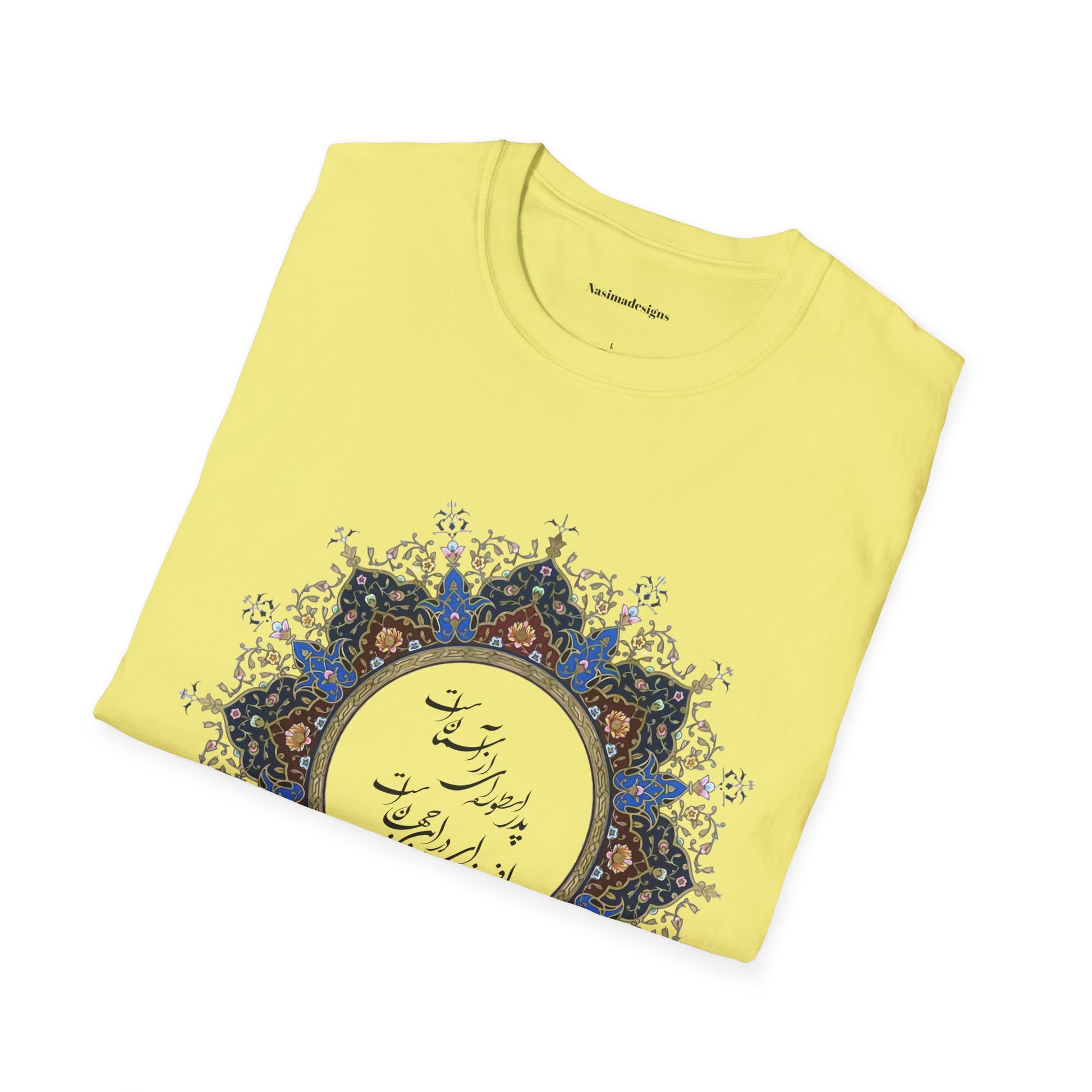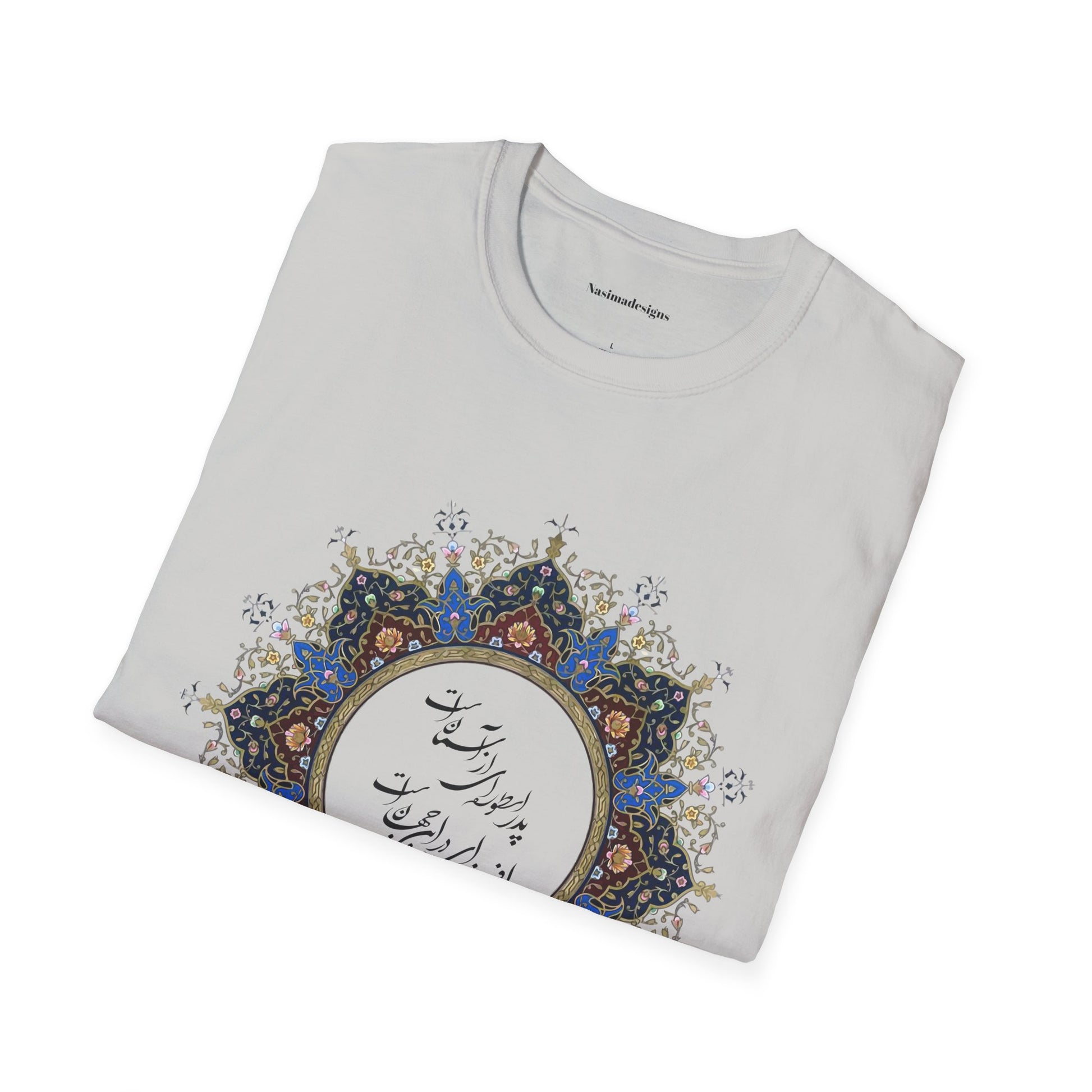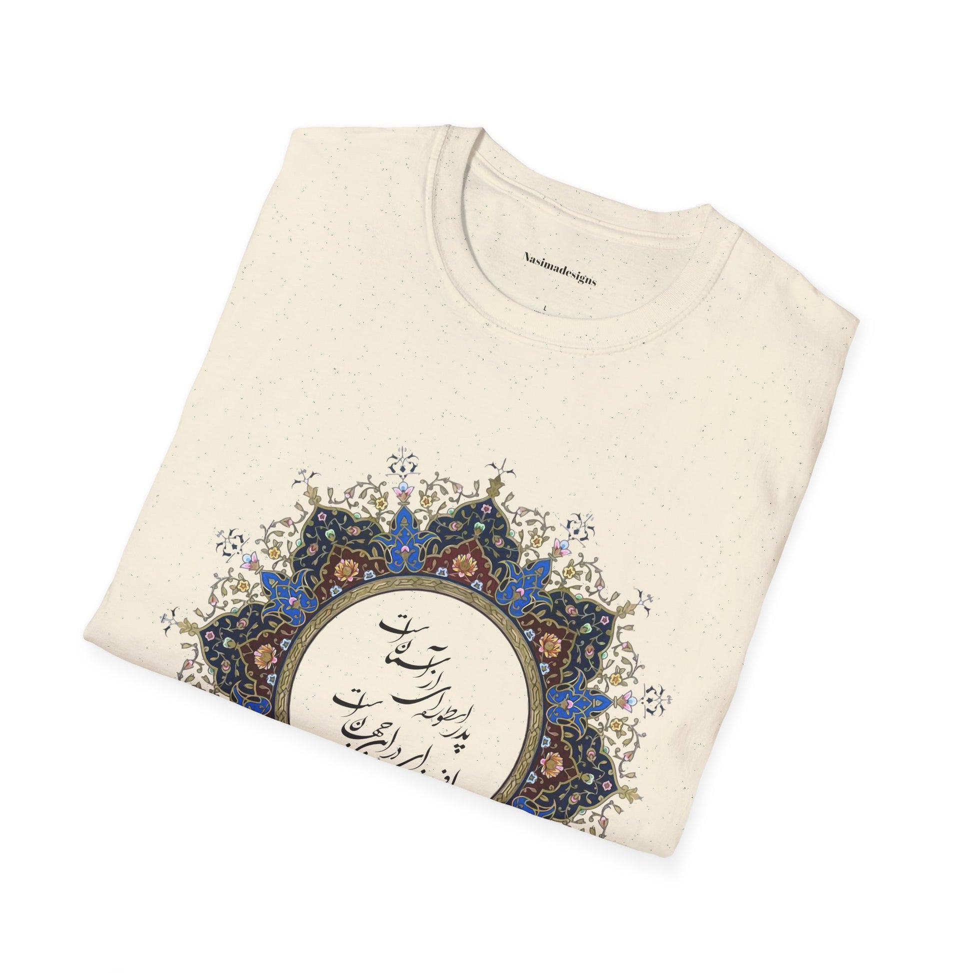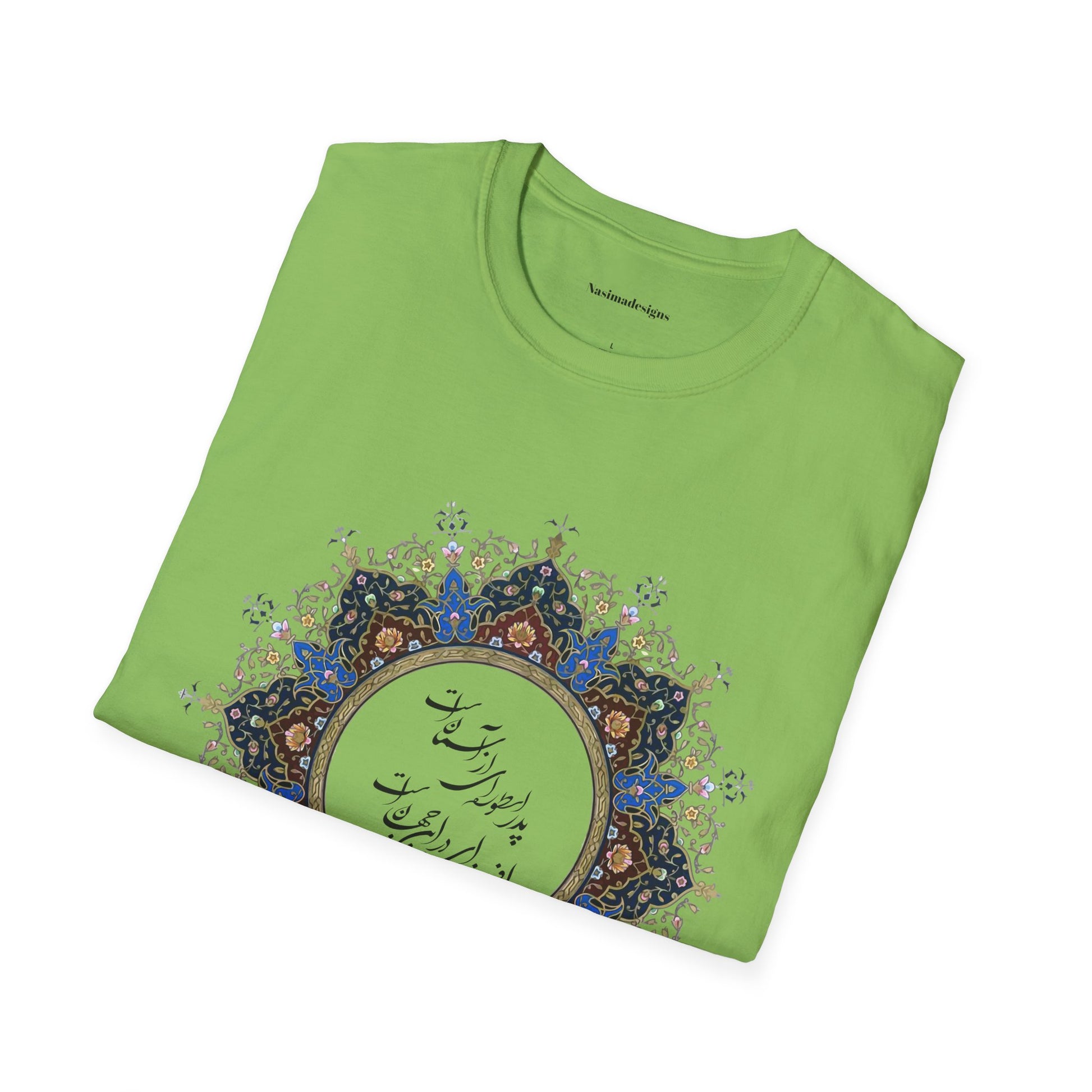 Honor the timeless presence of a father with this beautifully designed unisex softstyle t-shirt featuring the heartfelt Persian verse: