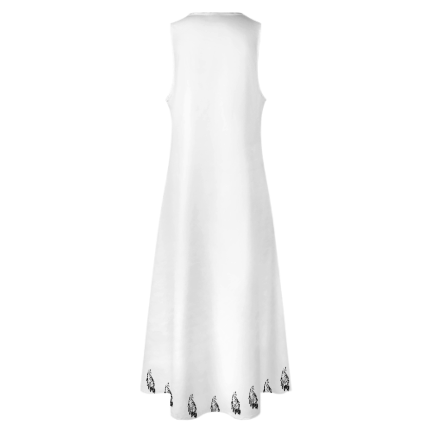 Crafted for the woman who values both elegance and meaning, this sleeveless ankle-length dress blends modern design with ancient poetry. Made of soft, wrinkle-resistant polyester, it offers a luxurious drape and smooth touch, ideal for special occasions or artistic everyday wear.