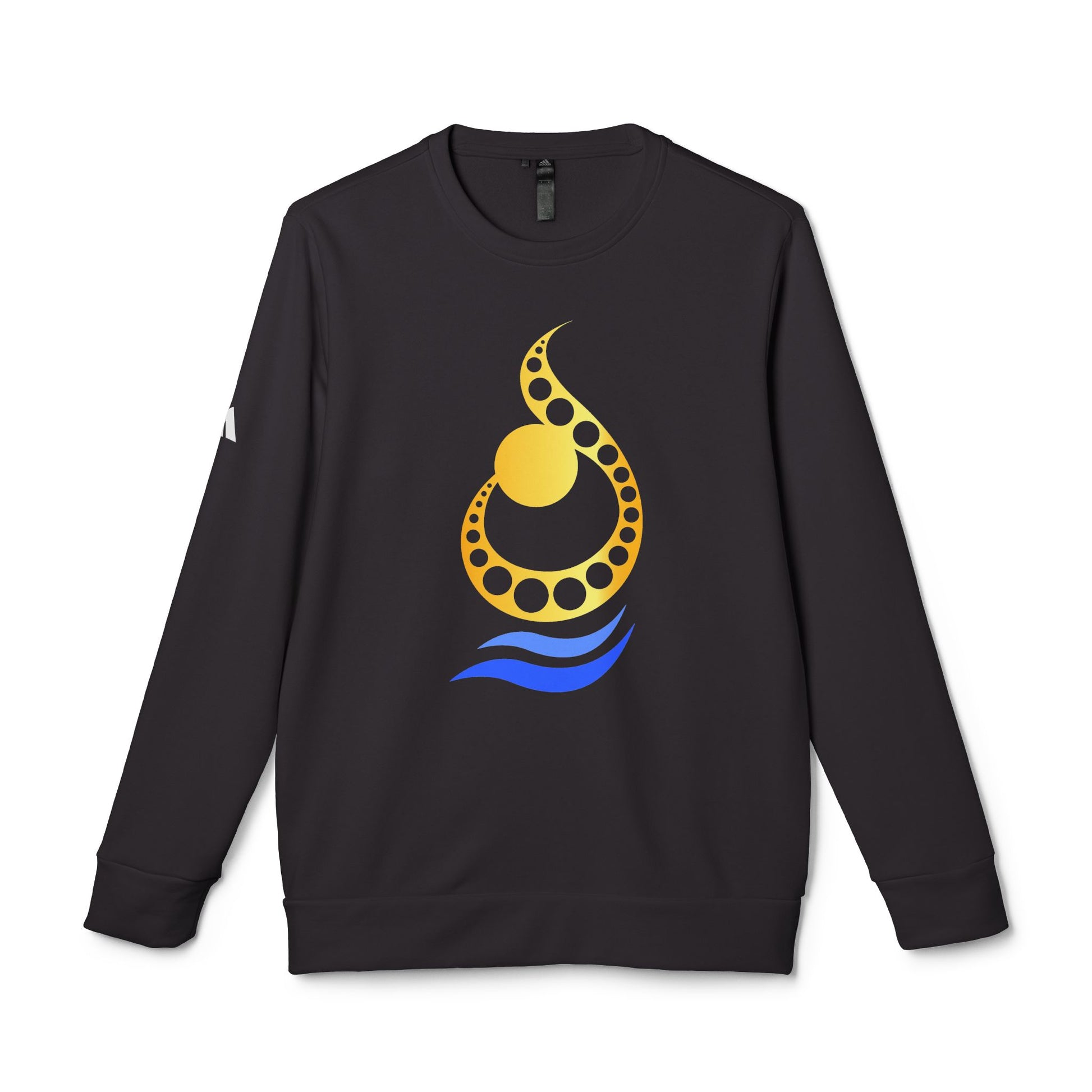 A soft, structured crewneck sweatshirt designed for everyday wear with a touch of coastal energy and conscious craftsmanship. The minimalist design features a warm yellow sun-and-tentacle motif above stylized blue waves, printed using Direct-to-Film (DTF) technology for long-lasting, vibrant color.