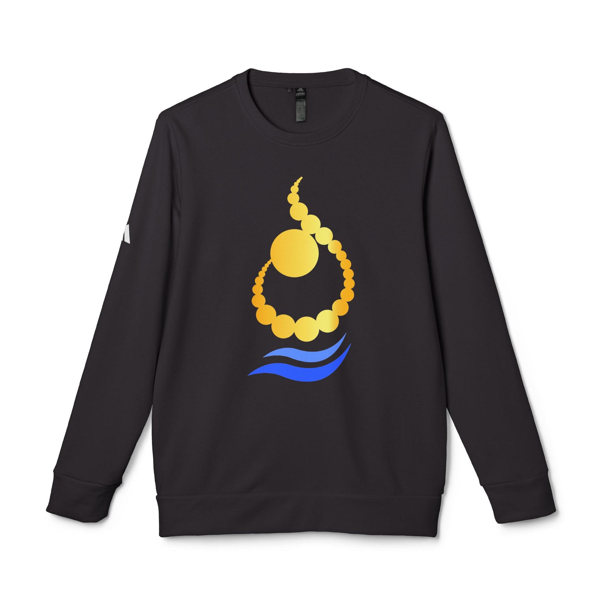 A soft, structured crewneck sweatshirt designed for everyday wear with a touch of coastal energy and conscious craftsmanship. The minimalist design features a warm yellow sun-and-tentacle motif above stylized blue waves, printed using Direct-to-Film (DTF) technology for long-lasting, vibrant color.