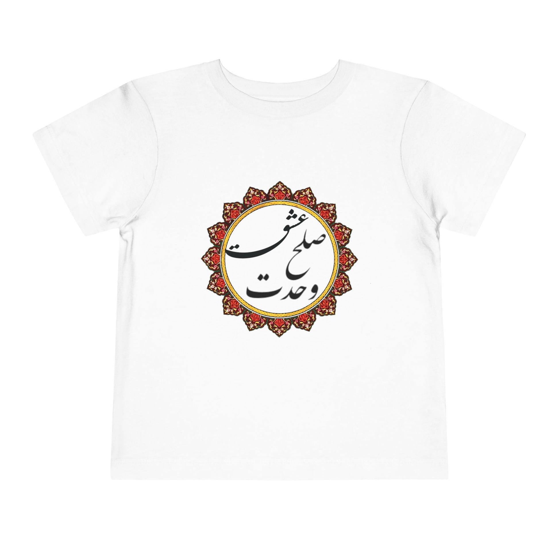 Soft, playful, and meaningful — this toddler tee carries Peace, Love & Unity in Persian calligraphy. Perfect for everyday adventures or as a thoughtful gift.