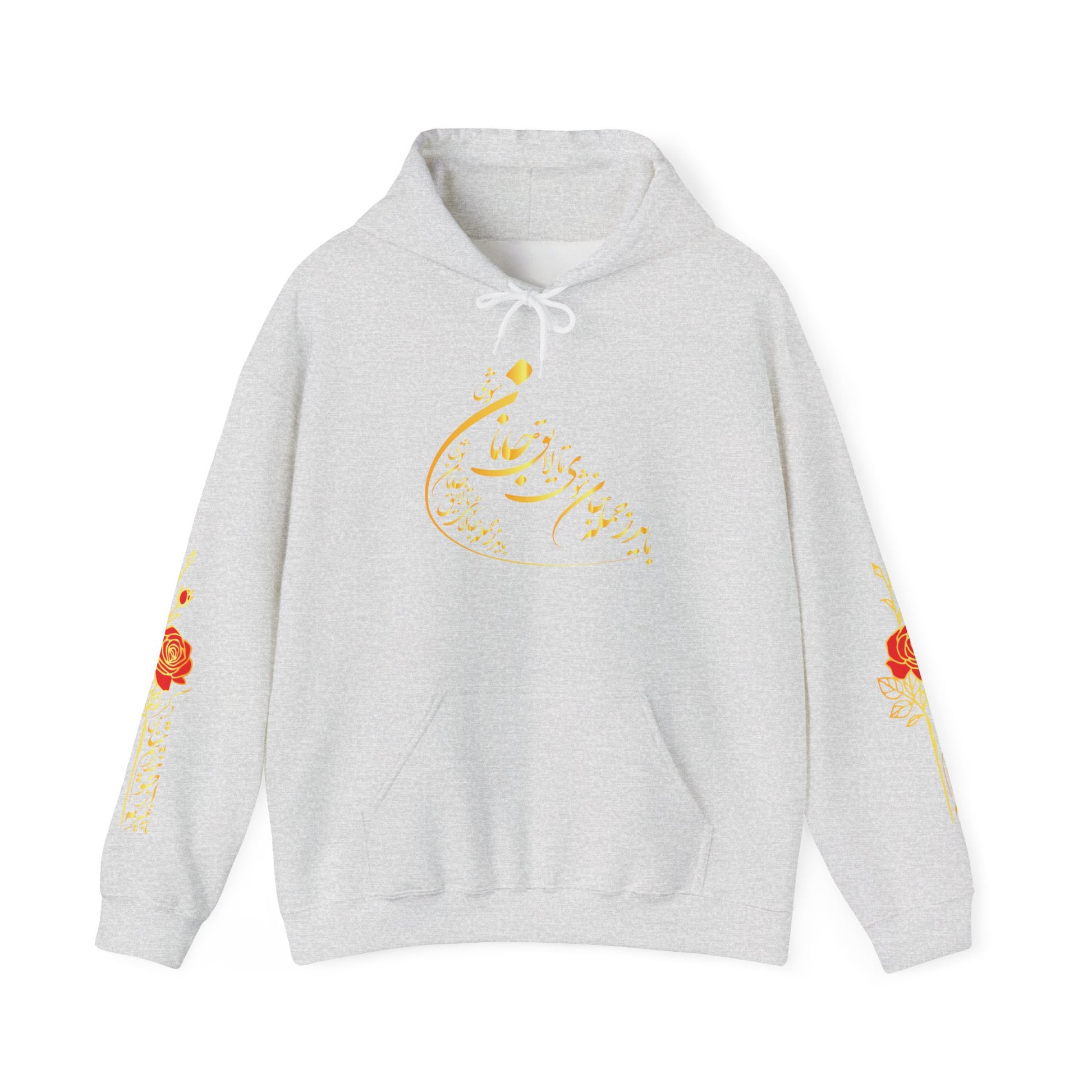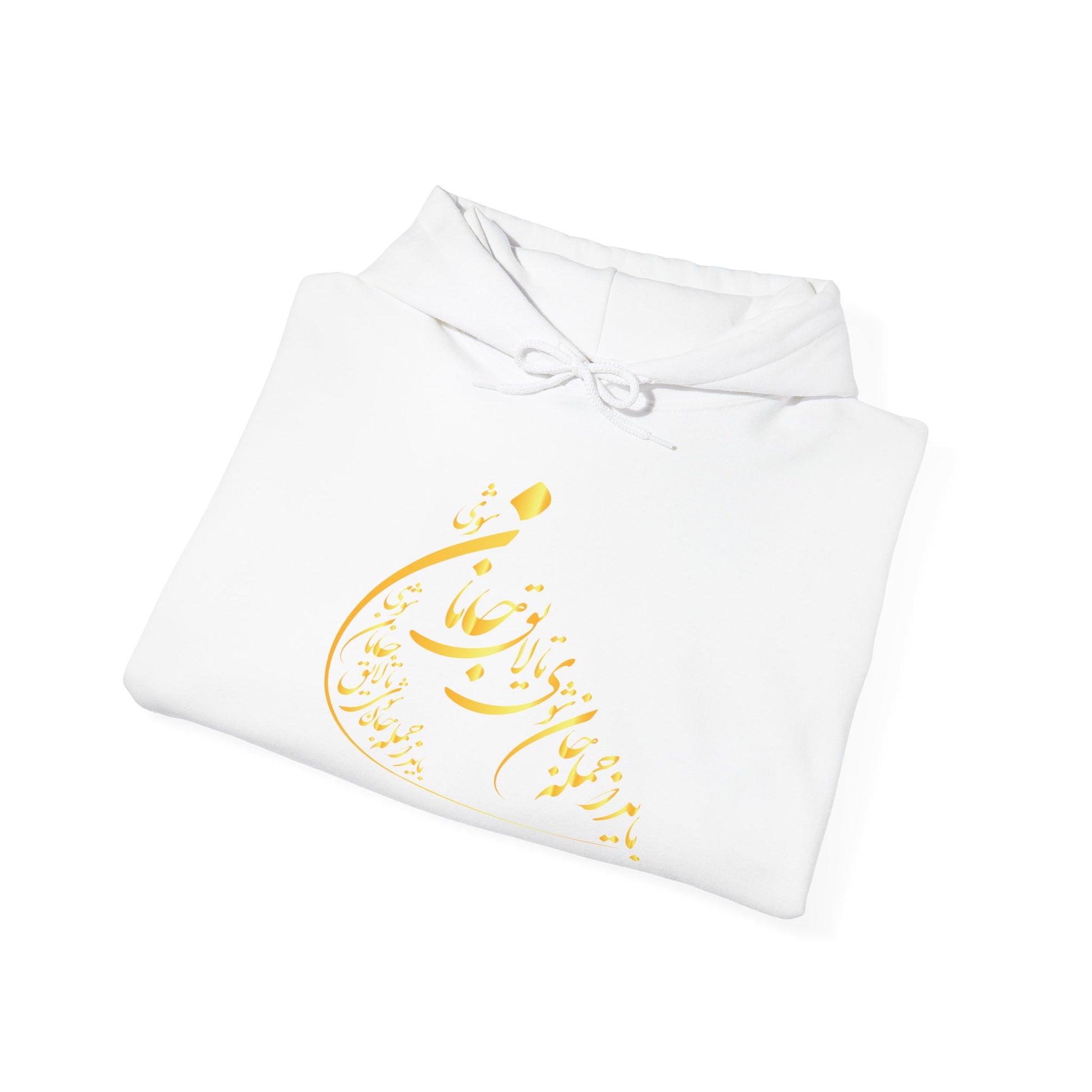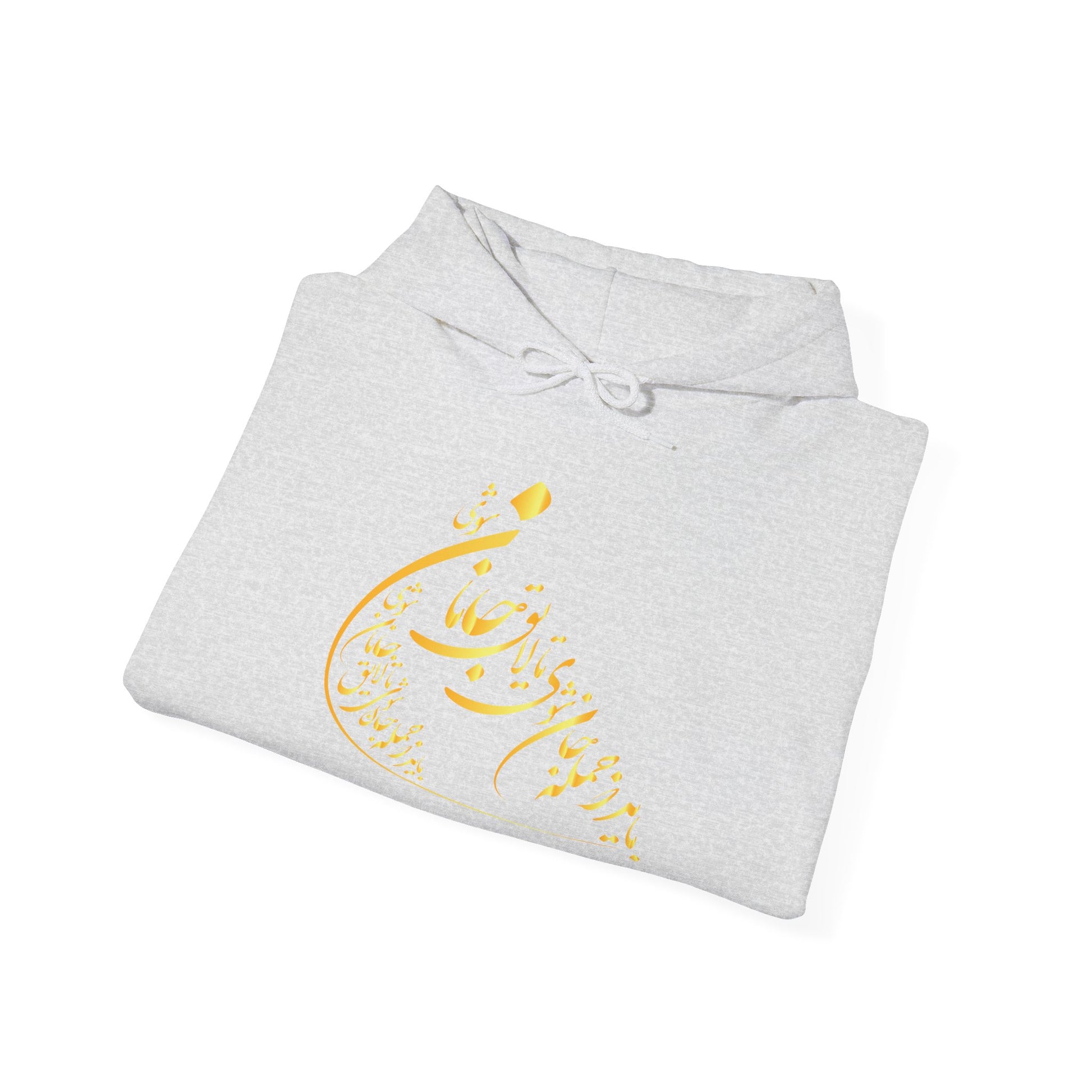 Wrap yourself in comfort and poetry with this beautifully crafted unisex hoodie featuring elegant Persian calligraphy by Molana (Rumi). The verse "باید که جمله جان شوی تا لایق جانان شوی" adds a soulful depth to this cozy cold-weather essential — reminding you (and the world) of the inner journey toward love and worthiness.